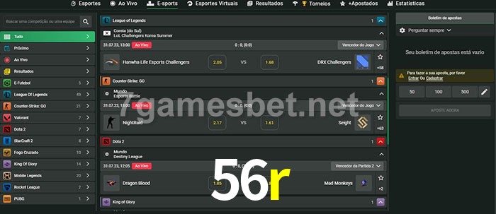 O 56r oferece uma grande seleção de opções de apostas em e-sports com probabilidades competitivas